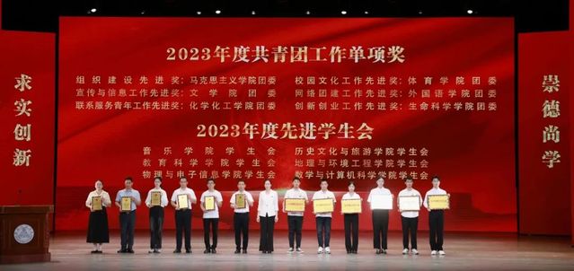 学生会获评2023年度“先进学生会”;黄谋军老师获学校第十三届青年五四奖章;崔继来、陈涛老师获评学校2023年度“优秀班主任”;旅游管理(金牌讲解)专业2101级1班团支部获评“五四红旗团支部标兵”;叶国安、黄炯昊获“本科生国家奖学金”;万雅萱等93名同学获评优秀共青团干部、优秀团支书、优秀共青团员和优秀青年志愿者等荣誉。