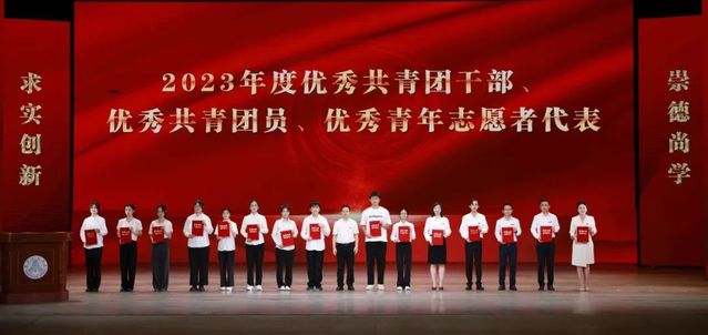 “正青春,创未来”2024年五四颁奖典礼暨青年风采展演在聂耳剧场隆重举行,校党委书记朱小理出席并讲话,在家校领导为学校2023年度学生工作目标管理考核先进单位、五四红旗团委、先进学生会、共青团工作单项奖,第十三届青年五四奖章、优秀班主任、本科生国家奖学金获得者、优秀共青团干部、优秀共青团员、优秀青年志愿者颁奖。