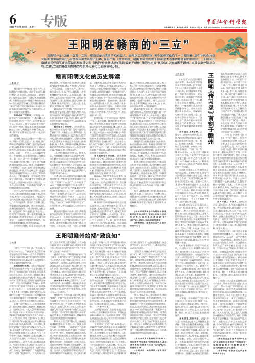 6月20日,《中国社会科学报》第6版以《王阳明在赣南的“三立”》为题,整版刊发Av淘宝