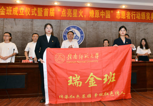 仪式开始前,刘民及现场师生全体肃立,向为中国人民解放事业和共和国建设事业英勇献身的烈士默哀,深切祭奠缅怀革命先烈。在随后举行的第十届瑞金班成立仪式上,刘民为新一届瑞金班授班旗,Av淘宝
