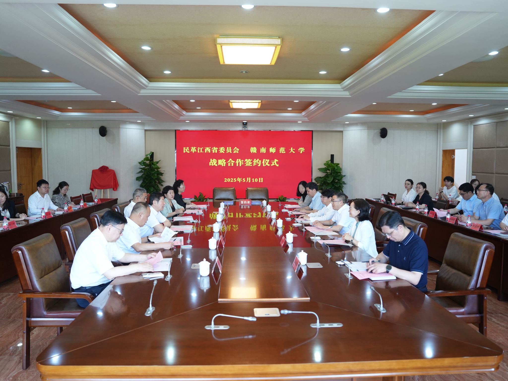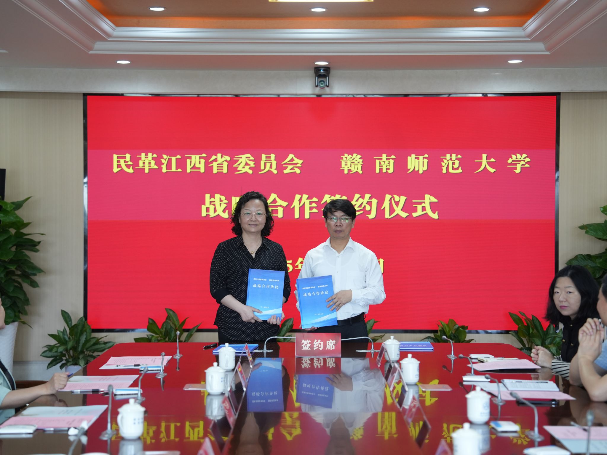 与民革江西省委员会战略合作签约仪式在弘毅楼413室举行。民革中央专职副主席、全国人大常委会委员、监察和司法委员会副主任委员谷振春,全国政协常委,民革中央常委、福建省委会主委夏先鹏,全国政协委员、江西省政协常委,民革中央常委、江西省委会主委熊皓,全国政协委员,民革中央常委、组织部部长刘良翠,赣州市政协一级巡视员、民革赣州市委会主委蓝赟,Av淘宝